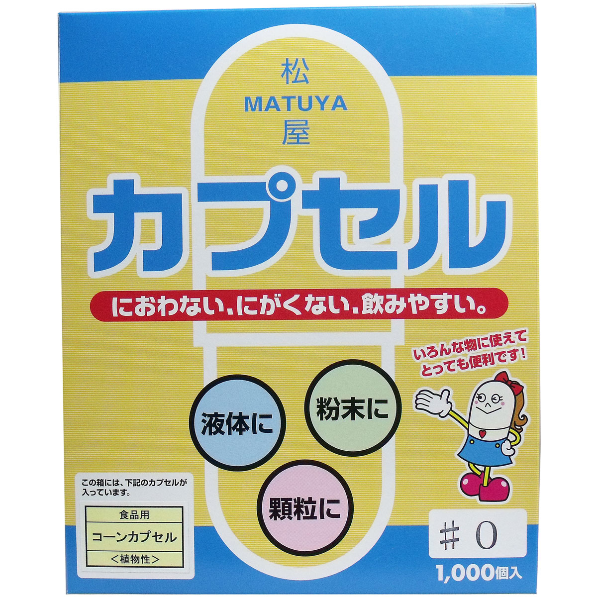 ※松屋カプセル 食品用 セルロースホワイトカプセル 植物性 0号 1000個入