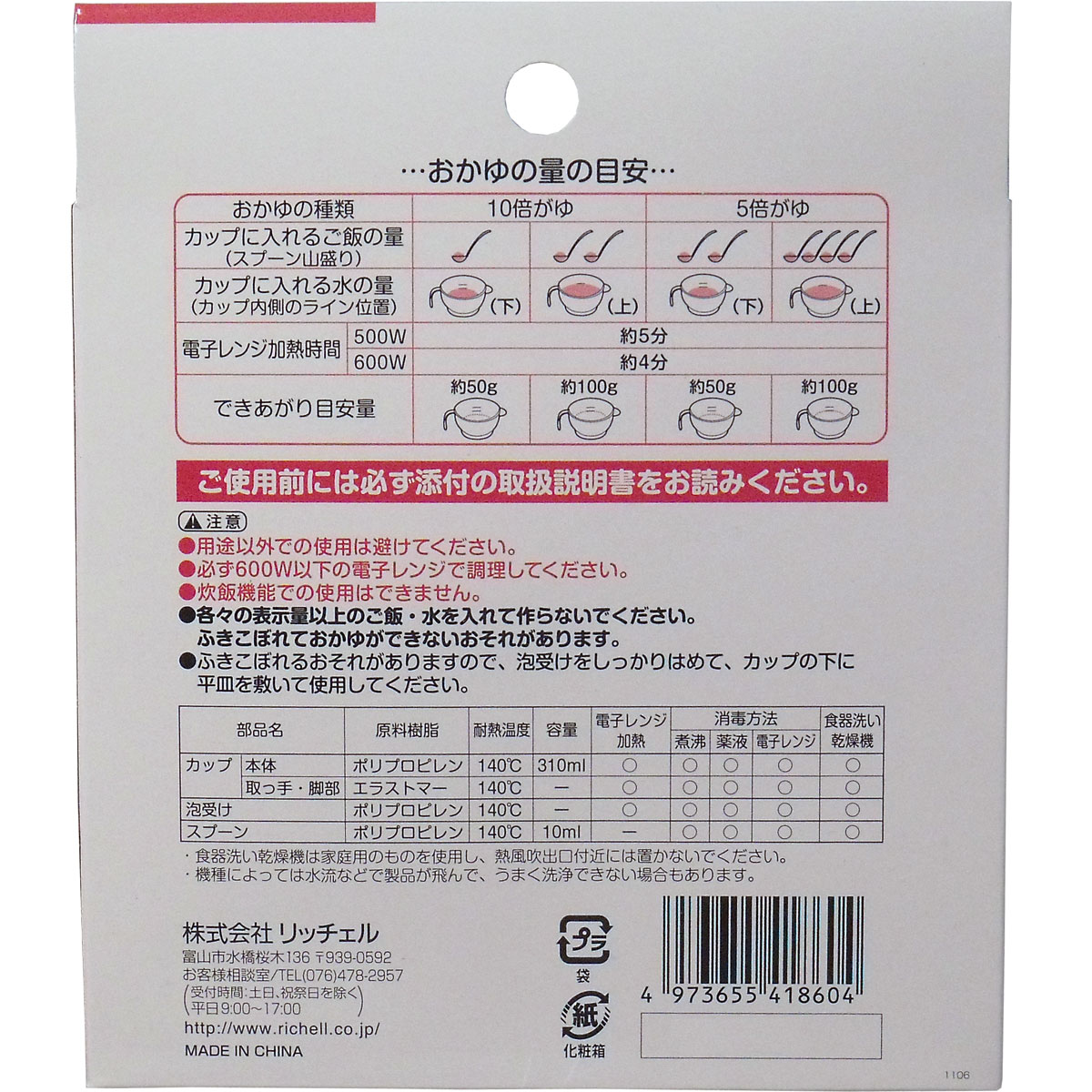 ・各々の表示量以上のご飯、水を入れて作らないでください。ふきこぼれておかゆができないおそれがあります。