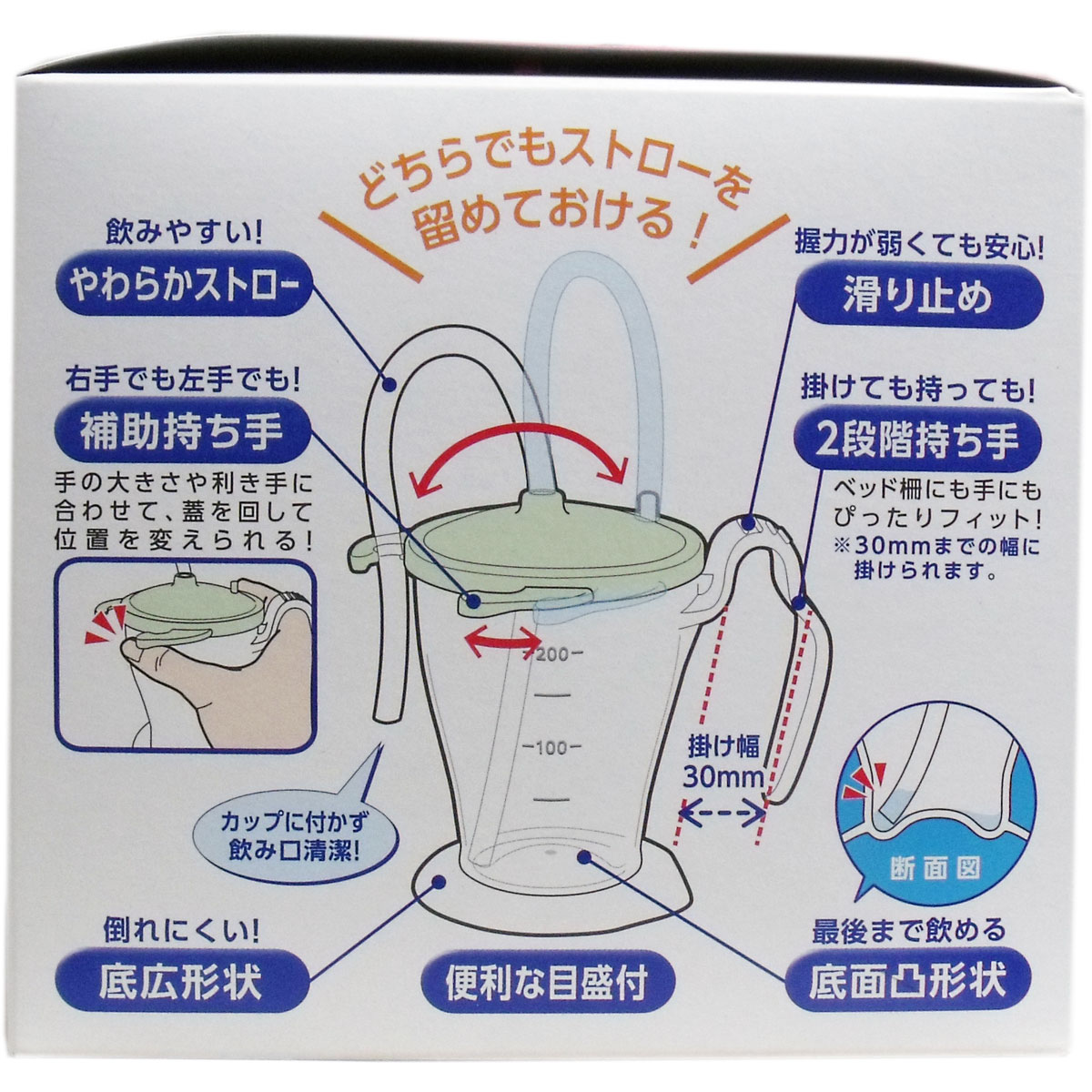 ベッド柵にも手にもぴったりなこぼしにくいストローカップです!