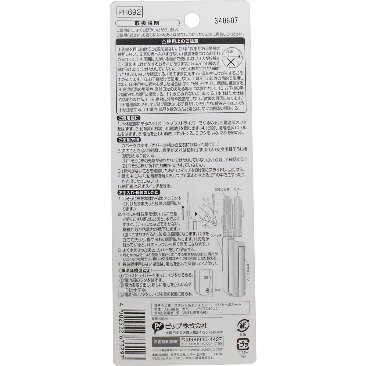 製造国:本体・・・中国、耳そうじ棒、カバー・・・日本
