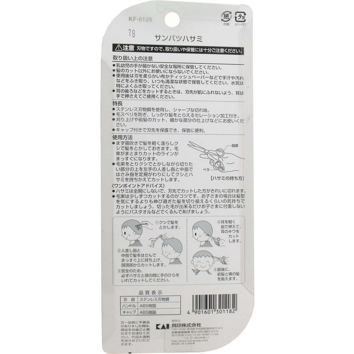 (3)安全のため、必ずハサミと頭の間に手のひらを入れてカットしてください。