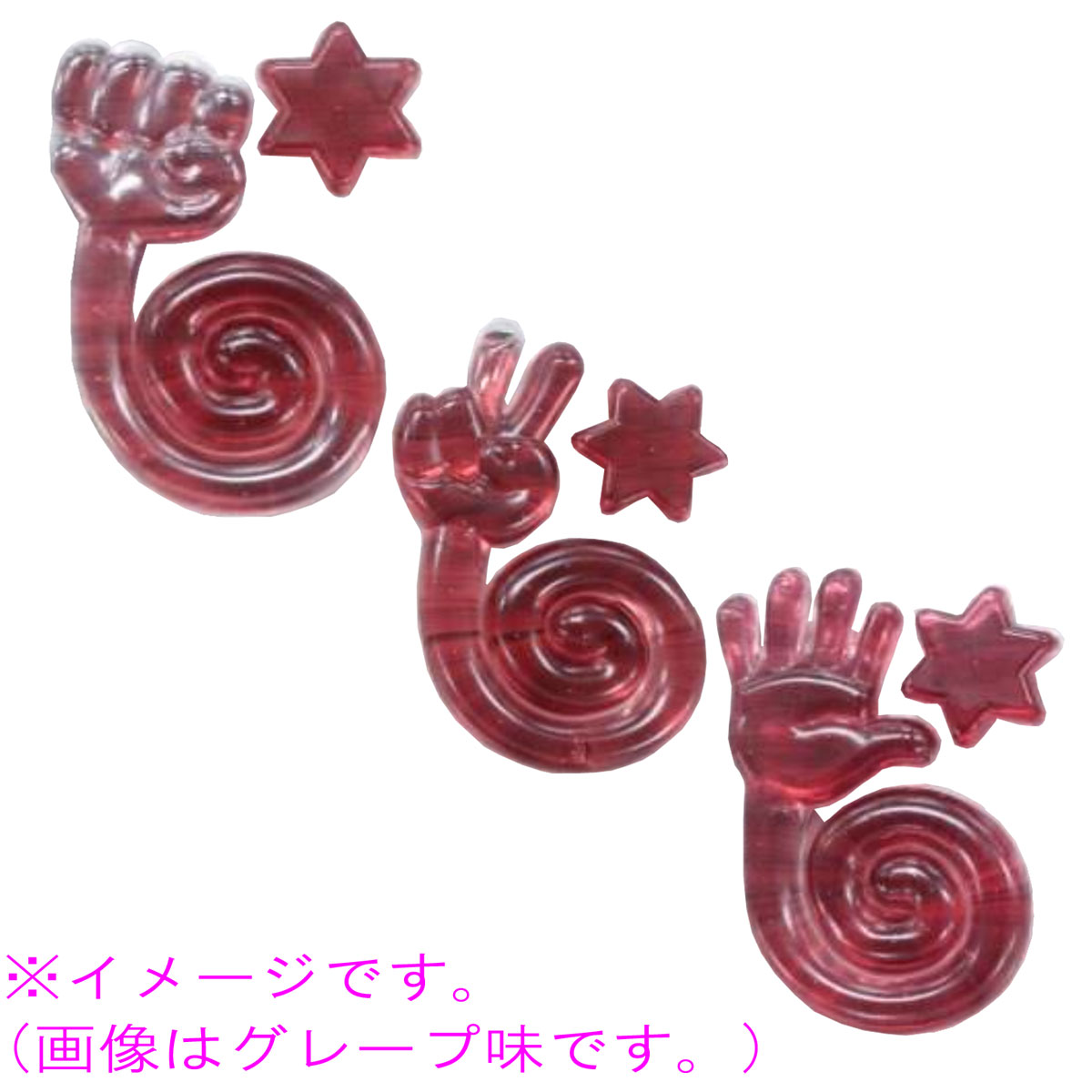 ●中から出てくるグミの形は「グー、チョキ、パー」の全部で3種類。どれが出るかはお楽しみ♪