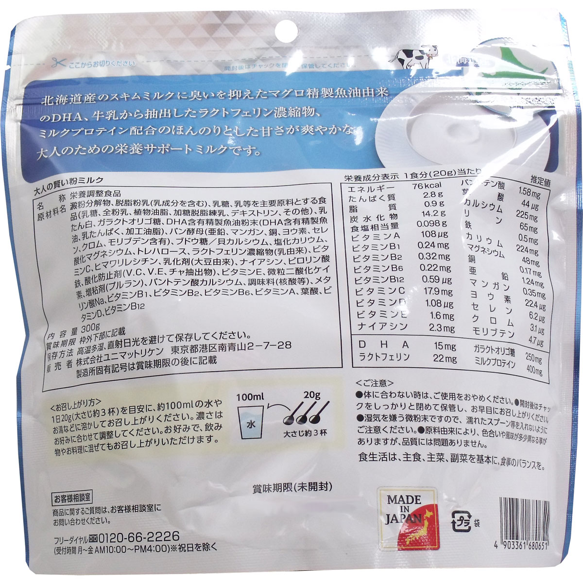 北海道産のスキムミルクに臭いを抑えたマグロ精製魚油由来のDHA、牛乳から抽出したラクトフェリン濃縮物、ミルクプロテイン配合のほんのりとした甘さが爽やかな、大人のための栄養サポートミルクです。
