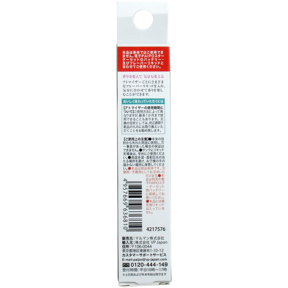 ●アトマイザーは消耗品です。毎日ご使用の場合2週間程度を目安に新品に交換していただくことをおすすめします。